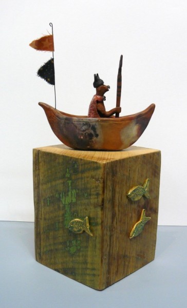 Ceramic and wood.