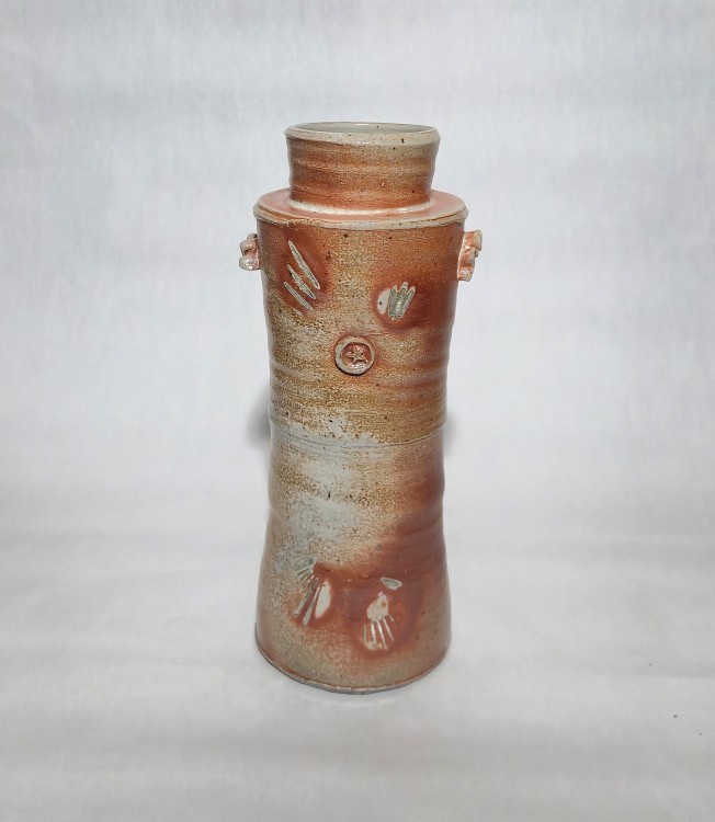 The pots are then left to the unpredictability of the soda kiln, accentuating the flame path through use of simple slips and glazes and carefully placed wadding. I also use personal taonga and found objects for simple decorative aspects to imbue each pot with its own story. - Ben Cole