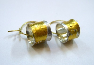 Pure silver and pure gold with 18ct gold hoops.