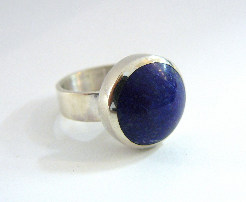 Sterling silver and lapis.