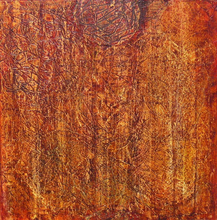 While creating these works, I am completely engaged with the materials at hand – rust, soot, clay, hammer-scale, chalk, Indian Ink, plaster, charcoal, pigments and media, from oil to acrylic. Once I have finished, however, I realise that there was almost a sort of ghost, a figment of my past, that inhabited the work as I developed it. The results are the paintings now included in this exhibition.