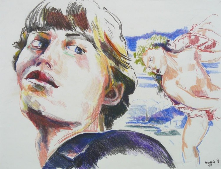As a painter myself, I love depicting skin colours and facial features: hair, lips, eyes and sunglasses, using the quick medium of colour pencil.